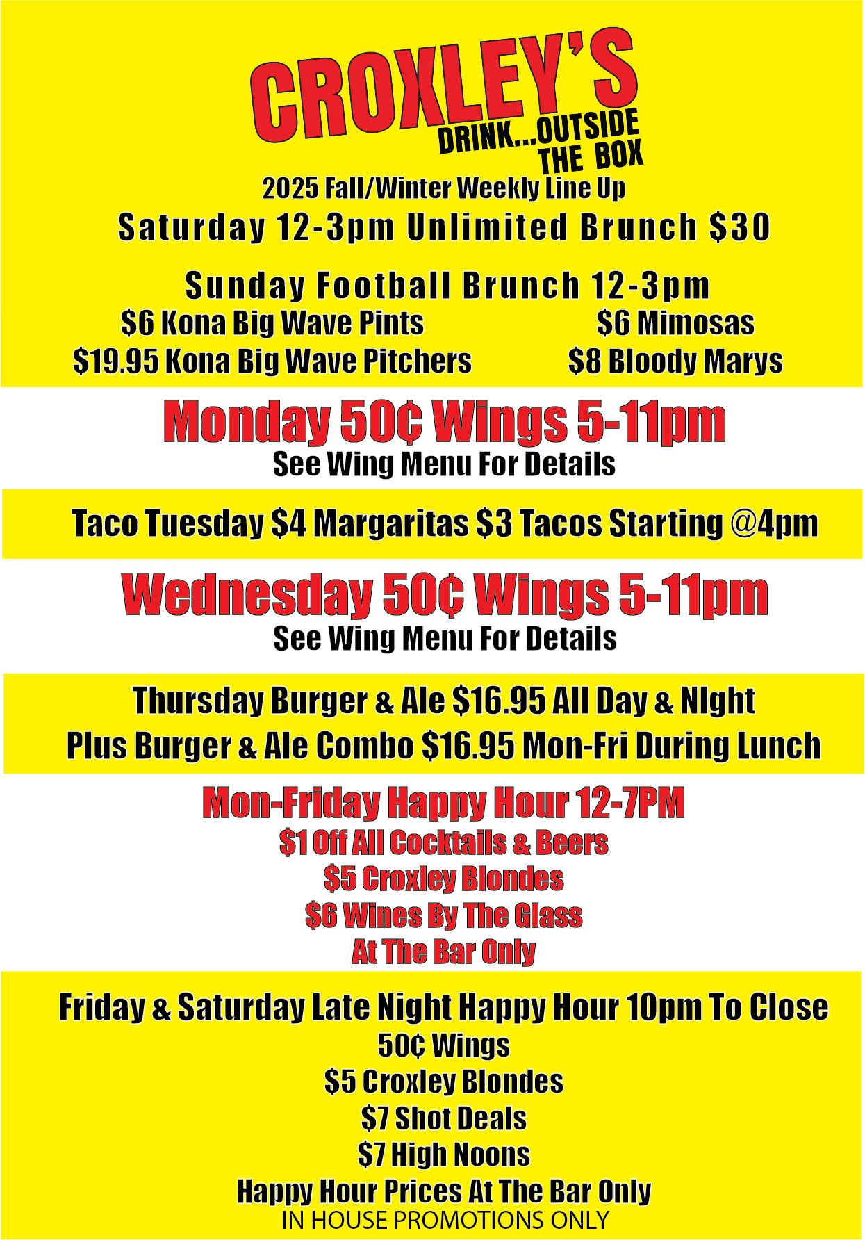 Croxley's Weekly Line Up